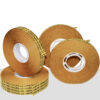 Nastro biadesivo reverse wound in tessuto non tessuto di medio spessore 0,08 mm, adesivo acrilico in solvente modificato, liner in carta bisiliconata avana.